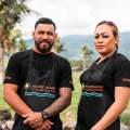 - Arrange fish on breadfruit and taro and garnish four small sprigs of limu and a sprig of spring onion.